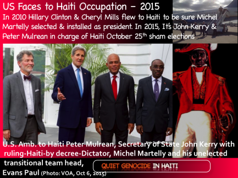 Some Haitians wonder if Martelly is signing all the decrees he’s currently signed -that are in the interests of foreign businesses – because the US is giving the family these special favors? Such as, altering official records about his US citizenship? Remaining silent about his son’s arrest in September 2015 so that Martelly and his un-elected transition team may be the faces of the US orchestrated corrupt October 25 elections? May continue to preside over election season violences, the rise in killings, arrests, terrors and other state-sponsored acts meant to dissuade residents, in the populous areas, from voting who are more likely to vote against the US-approved candidates? Is this Martelly favor in exchange for the US keeping Olivier Martelly out of jail? Giving him bail?